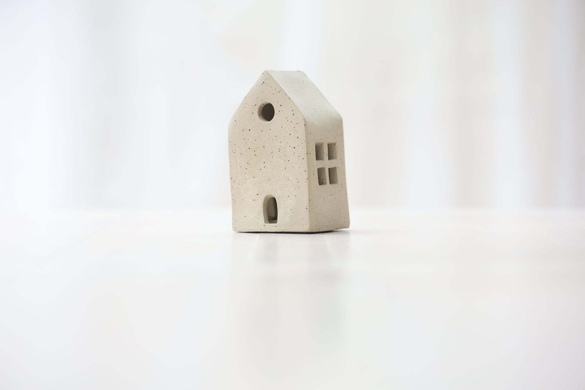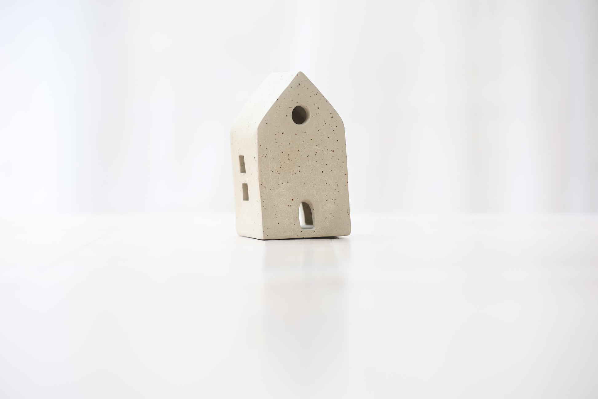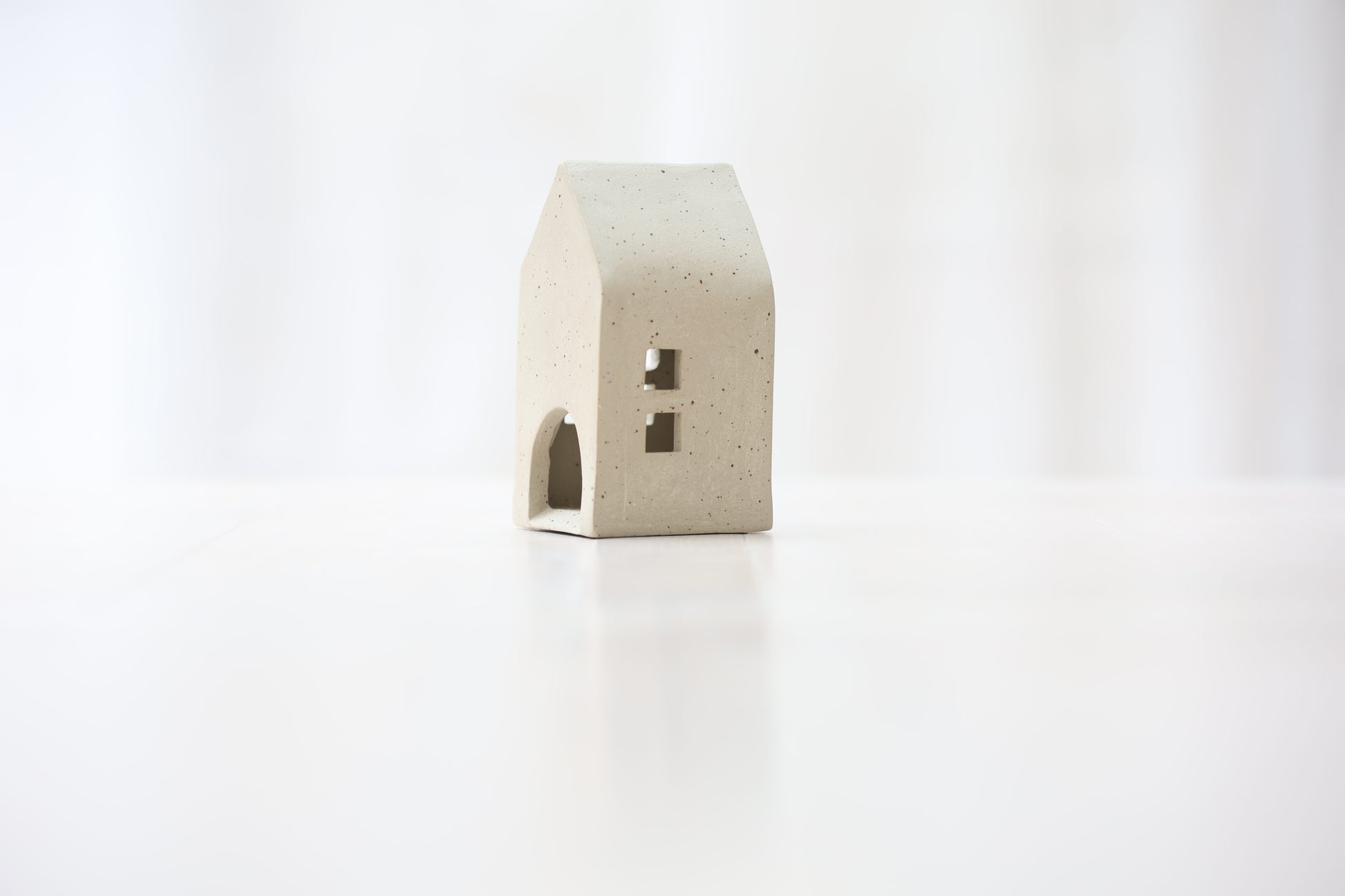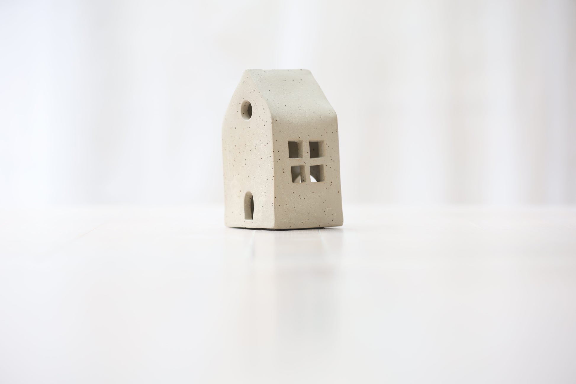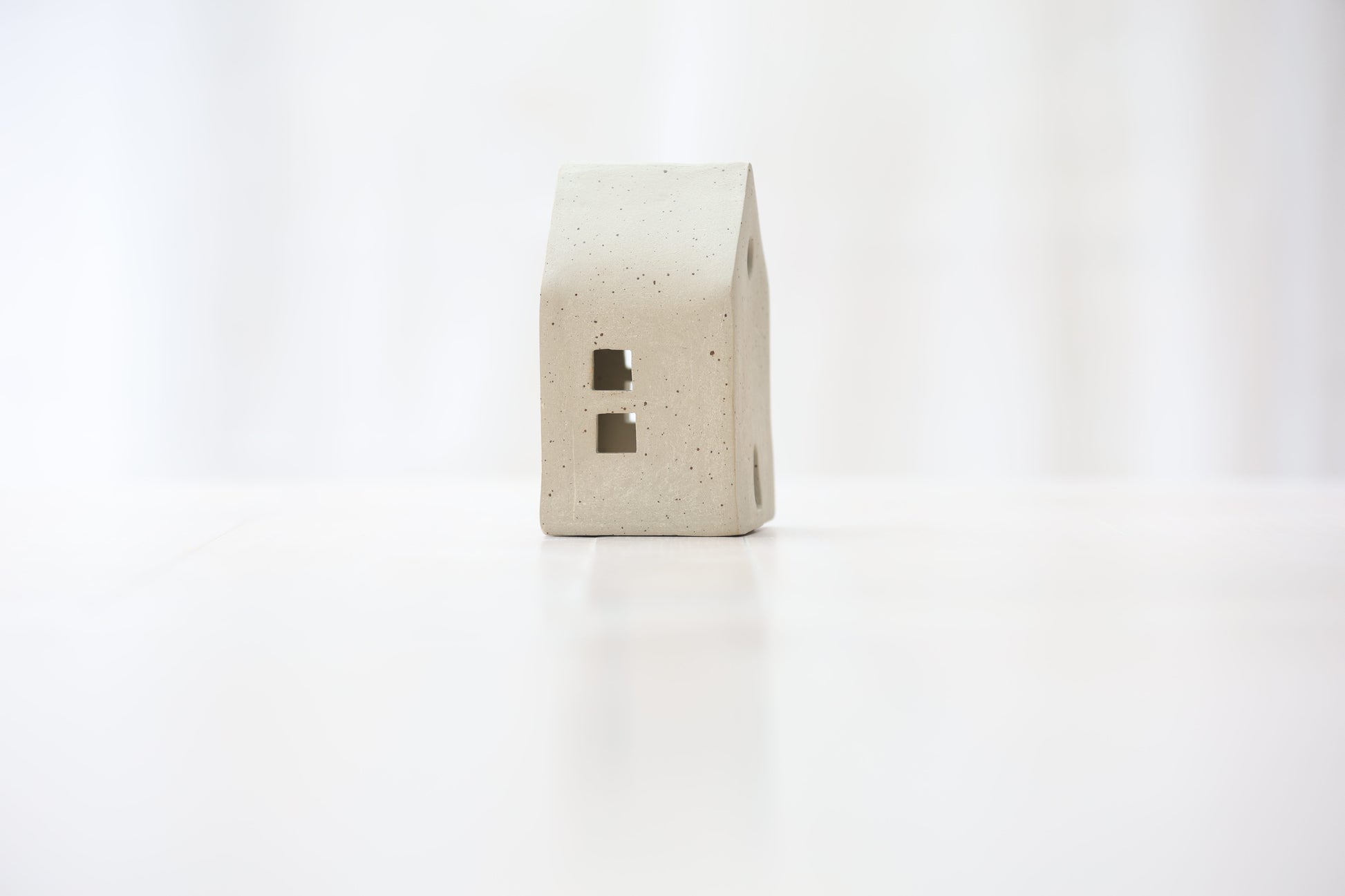 Maison photophore en grès blanc pyrité