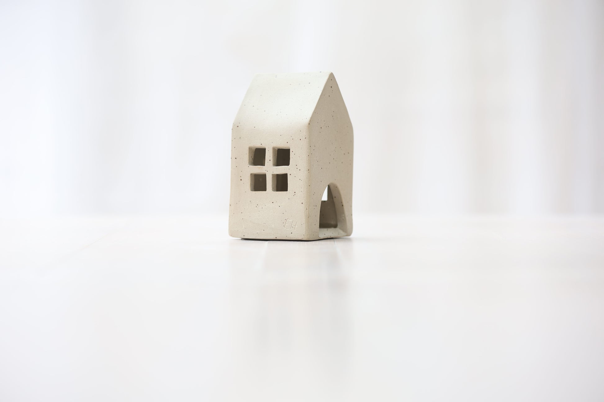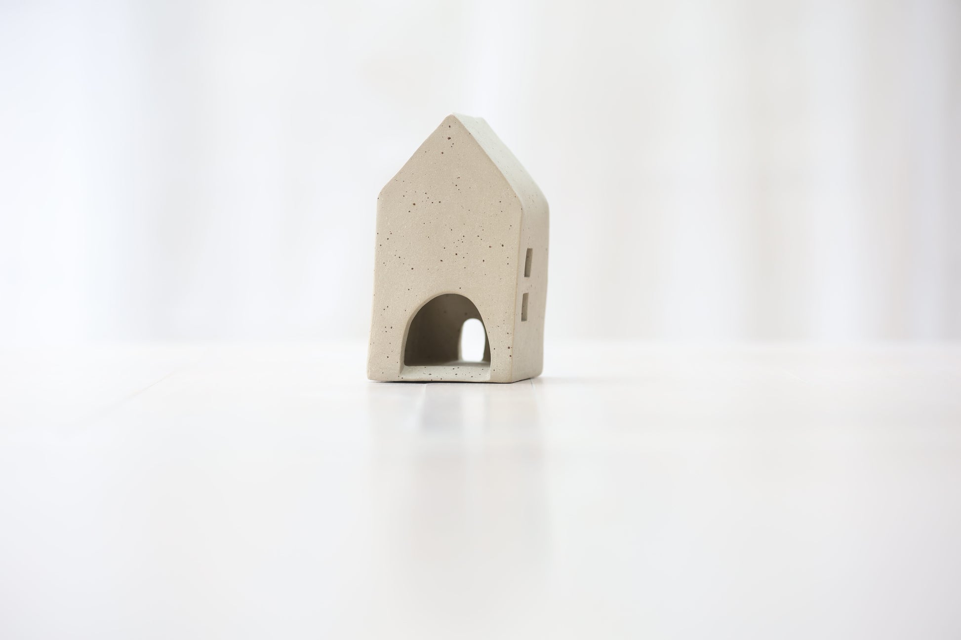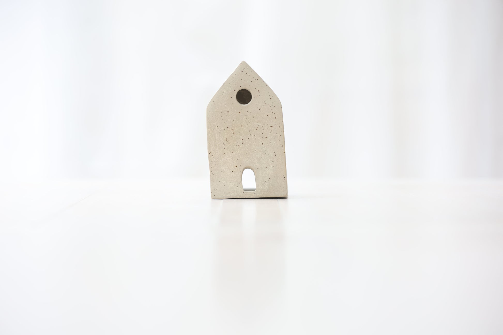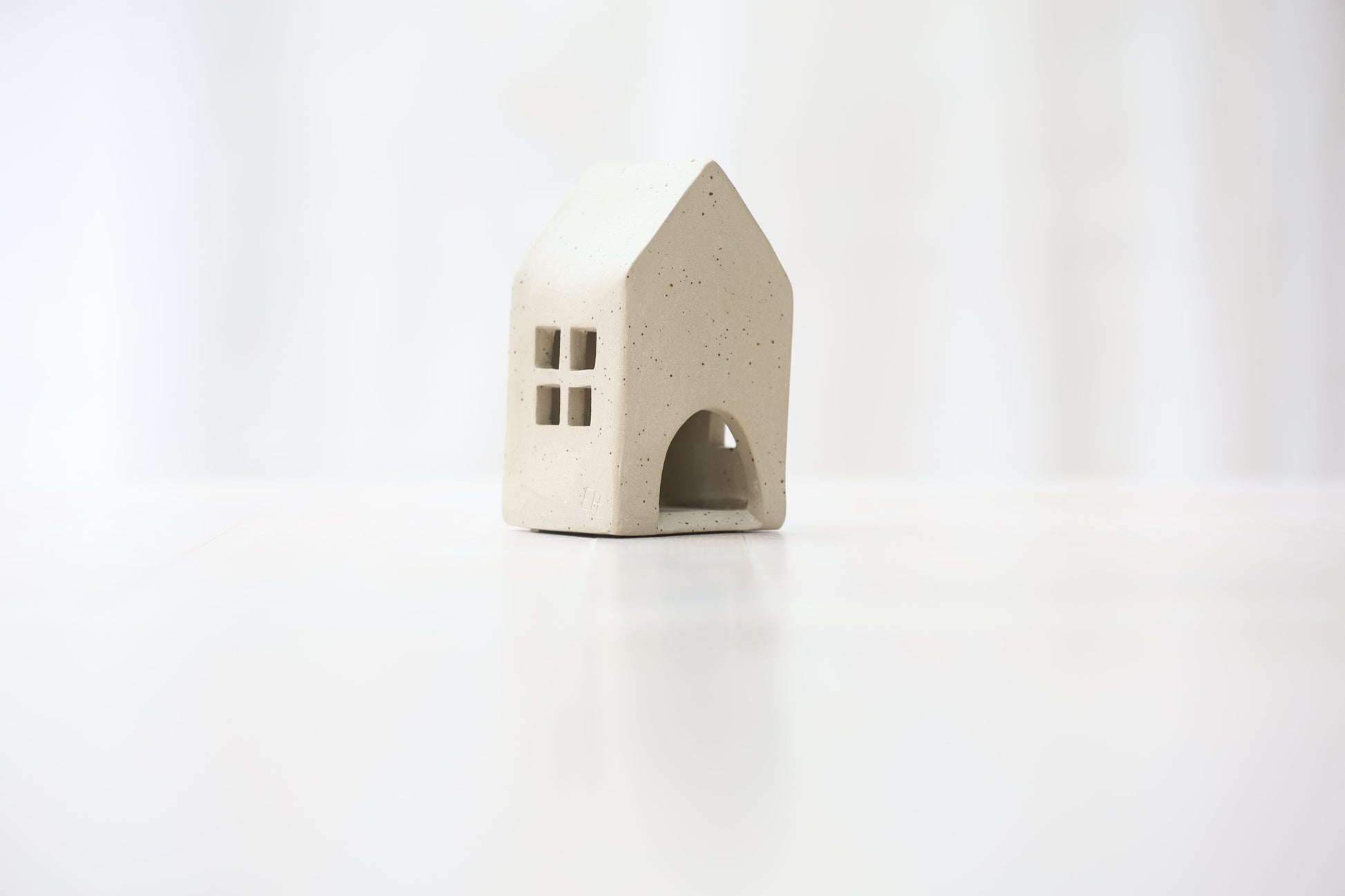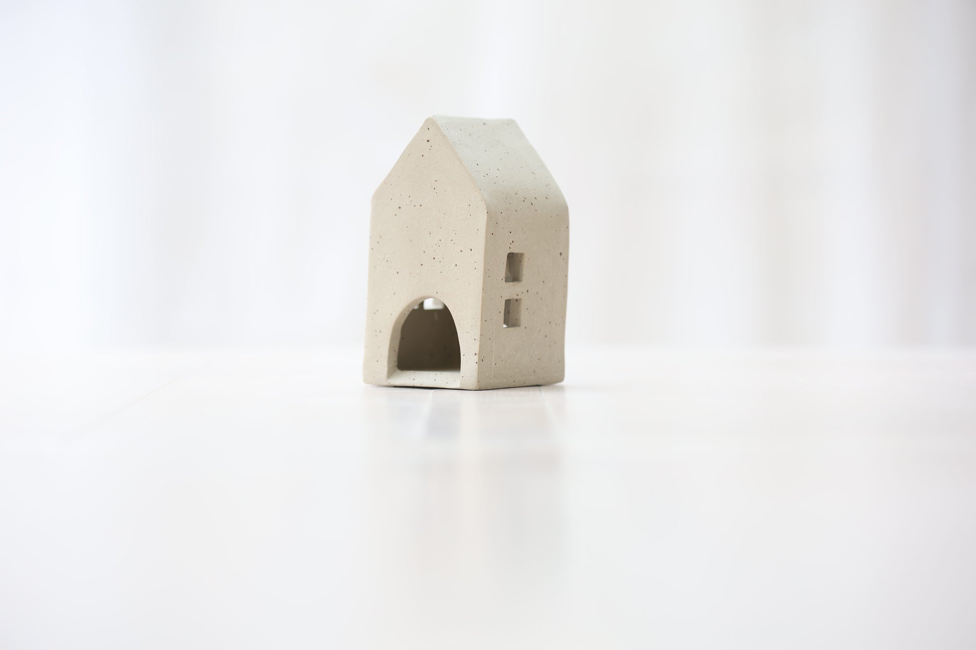 Maison photophore en grès blanc pyrité