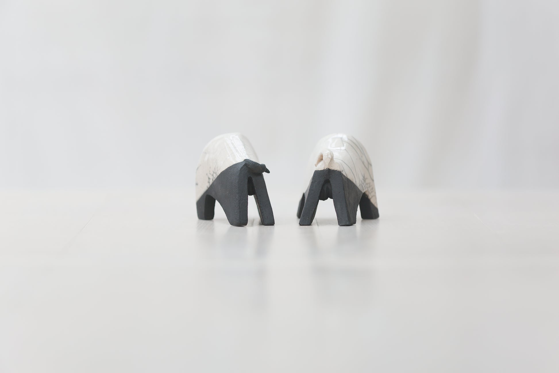 Les pièces sont installées dans un four montant progressivement jusqu'à 900°, lorsqu'elles sont incandescentes, elles sont sorties rapidement afin de créer un choc thermique, l'email craquèle. Puis les pièces sont placées à l'enfumage, recouvertes de sciure de bois.